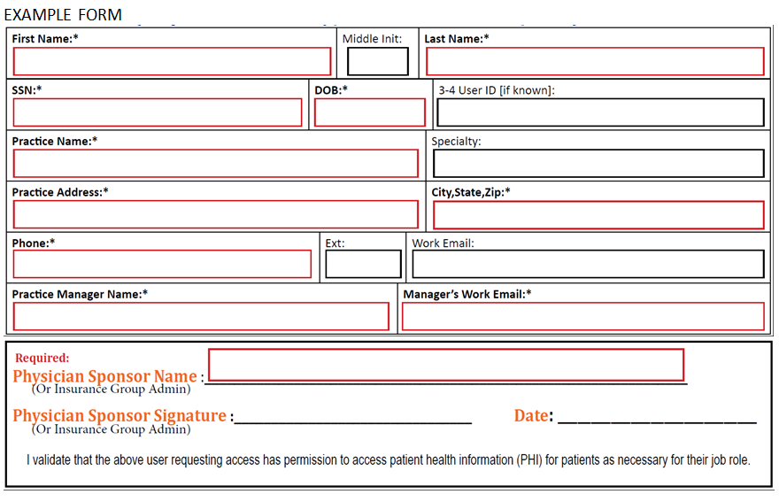 Fields marked with an asterisk (*) are highlighted in RED must be fully completed in order to print the form and submit to gain access to Methodist/STRIC applications.